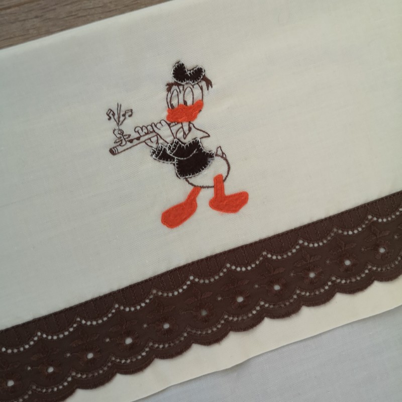 Vintage kinderlaken crème/bruin Donald Duck