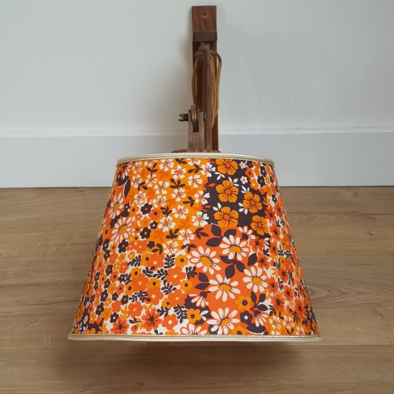 Lampenkappen-handgemaakt/Verlichting/WonenBestel nu!Vintage houten schaarlamp met lampenkap taps kleine bloemetjes oranje / bruin