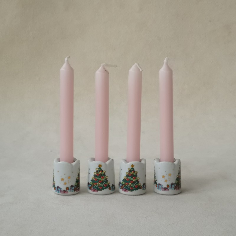 Vintage porselein kandelaars met kaarsjes Funny Design Germany kerstboom 4 stuks