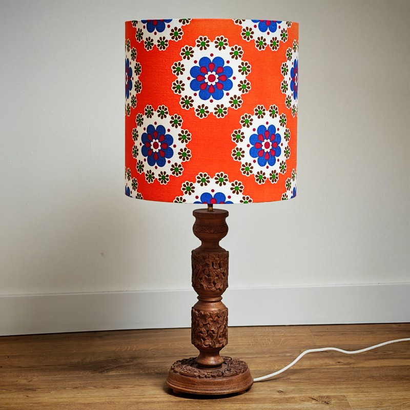 Niet op voorraadLampenkap bloemen oranje / blauwHelaas iemand was je voor.Ooit een gordijntje geweest nu omgetoverd tot een lampenkap! Katoenen vintage stof in een prachtige oranje kleur en met vrolijk bloemetjes decor. Daar word je vrolijk van!Afmetingen ca.: H 30, D 30cm Artikelnummer: 26LK0004 Categorieën: Lampenkappen-handgemaakt, Verkocht Tags: bloemen, Flowers, Handgemaakt, Lamp shade, Lampenkap, Oranje, Retro, VintageGerelateerde producten Niet op voorraadVerkochtVintage chrome serveerschaal Gero bladvormigBestel nu! Niet op voorraadVerkochtVintage persglazen theelicht / rechaudBestel nu! Niet op voorraadKeuken/Kookgerei en accessoiresVintage roestvrijstalen pannenonderzetters Tomado 3 stuks € 11,50Bestel nu!
