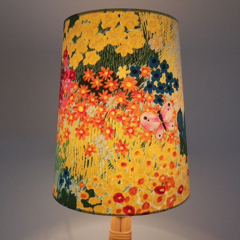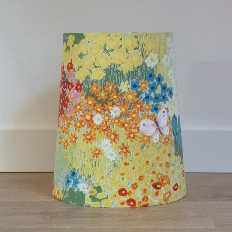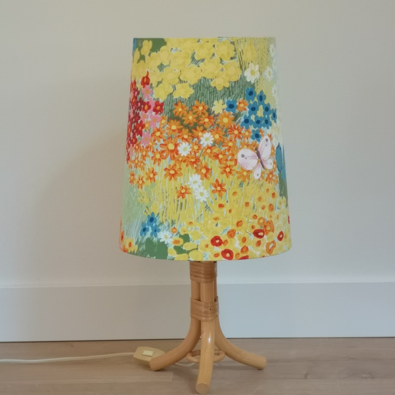 Bij deze lampenkap krijg je toch meteen een lente gevoel! De kap is gemaakt van een stevige katoenen stof met een vrolijk bloemetjes patroon en zie je ook het vlindertje?