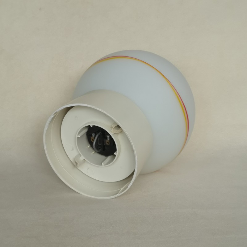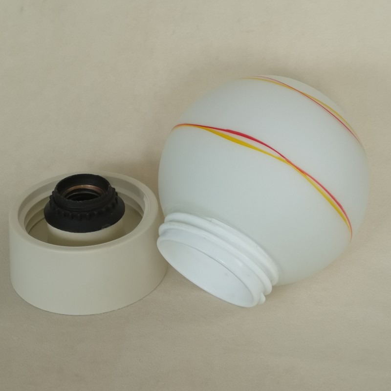 Vintage glazen plafondlamp / bol lamp mat wit met geel en rode strepen€ 37,50Leuke plafondlamp met schroefbol van mat wit glas met lijndessin in rood en geel. De crèmekleurige voet heeft een grote fitting van bakeliet. In een goede vintage staat.Afmetingen ca.: H17,5, D 13,5cm1 op voorraad Vintage glazen plafondlamp / bol lamp mat wit met geel en rode strepen aantal Bestel nu! Artikelnummer: 26WL0001 Categorieën: Verlichting, Wonen Tags: Bollamp, Melkglas, Plafondlamp, Plafonniere, Retro, Schroefbol, Toiletlamp, VintageGerelateerde producten Niet op voorraadVerkochtVintage kunststof hanglampBestel nu! Niet op voorraadVerkochtVintage knipbeurs kunstleerBestel nu! Niet op voorraadVerkochtVintage rumtopf keramiek Scheurich West Germany 829-29Bestel nu!